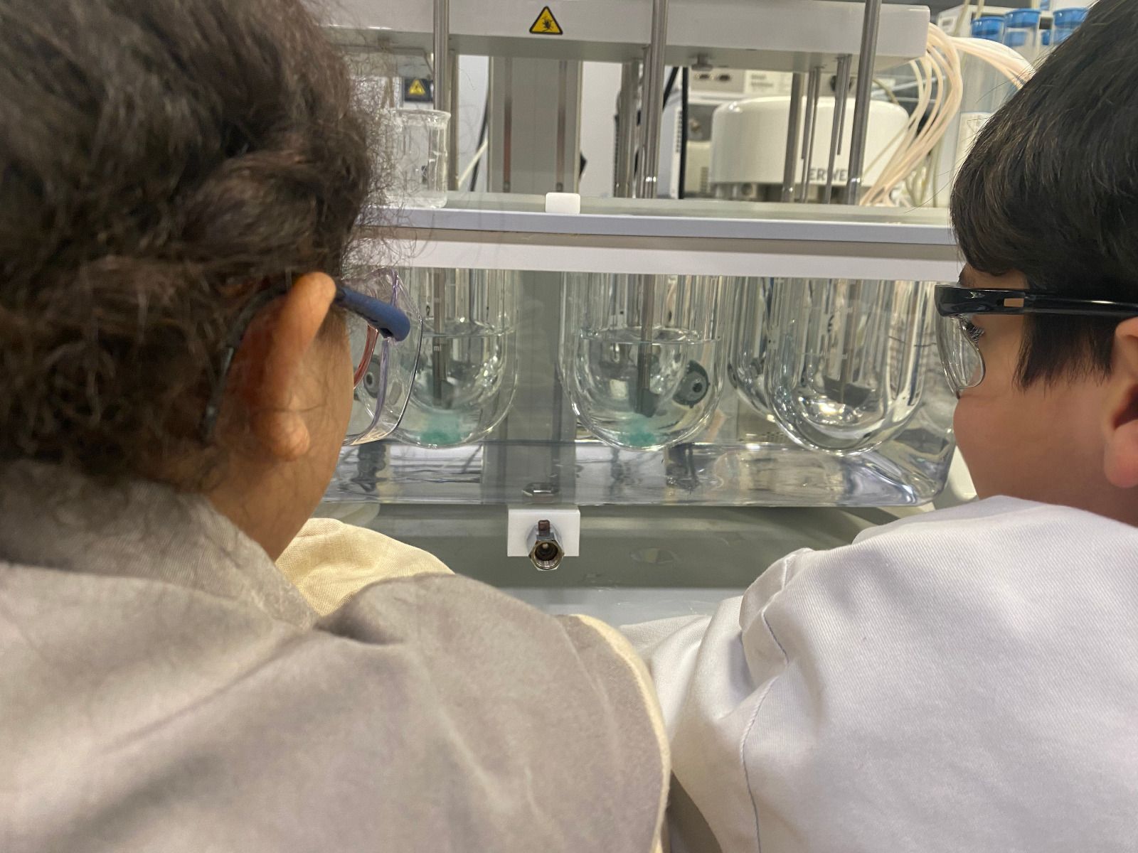 Gemeinsam durften sie unter Anleitung Tabletten aus Badepulver herstellen und diese dann bei der „Freisetzung“ und Analytik auf ihre „Funktion“ hin überprüfen. Sichtlich gebannt verfolgten die Kinder die Arbeitsabläufe der imposanten Geräte und lauschten gespannt den Ausführungen der Mitarbeitenden. Nach einem weiteren spannenden Experiment zum Farbtransport / zur Farbzusammensetzung stellte sich zudem noch der Standortleiter Maik Eckelmann den vielen Fragen der Kinder. Wie viele Mitarbeitende gibt es? Warum gibt es keine eckigen Tabletten? Was wird hier alles hergestellt? Die Kinder waren überrascht zu erfahren, wie viele verschiedenen Arbeitsfelder an der Entwicklung eines neuen Medikaments benötigt werden und wie viel Aufwand dafür betrieben wird.